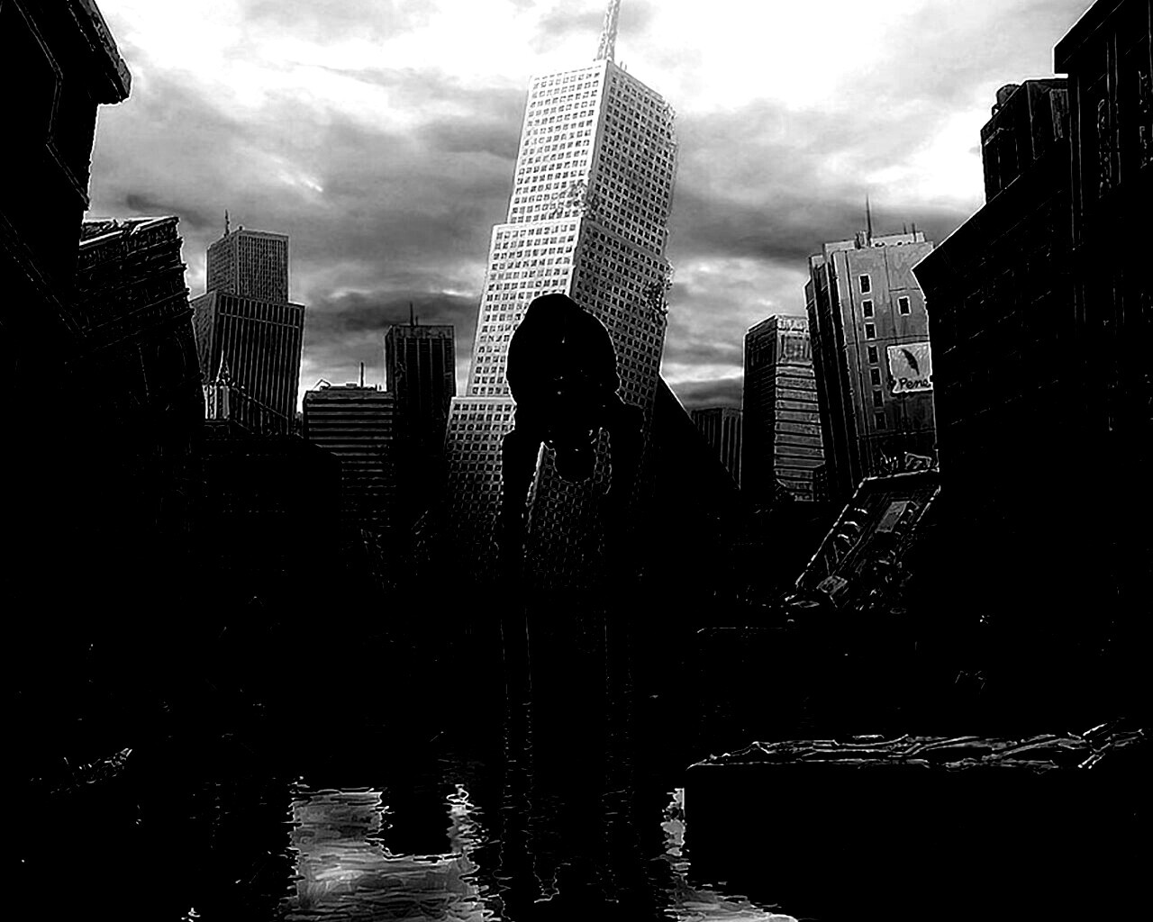 Обои для рабочего стола «Постапокалиптический город» 1280х1024 с фильтром inkwell (оригинал 1920х1200)