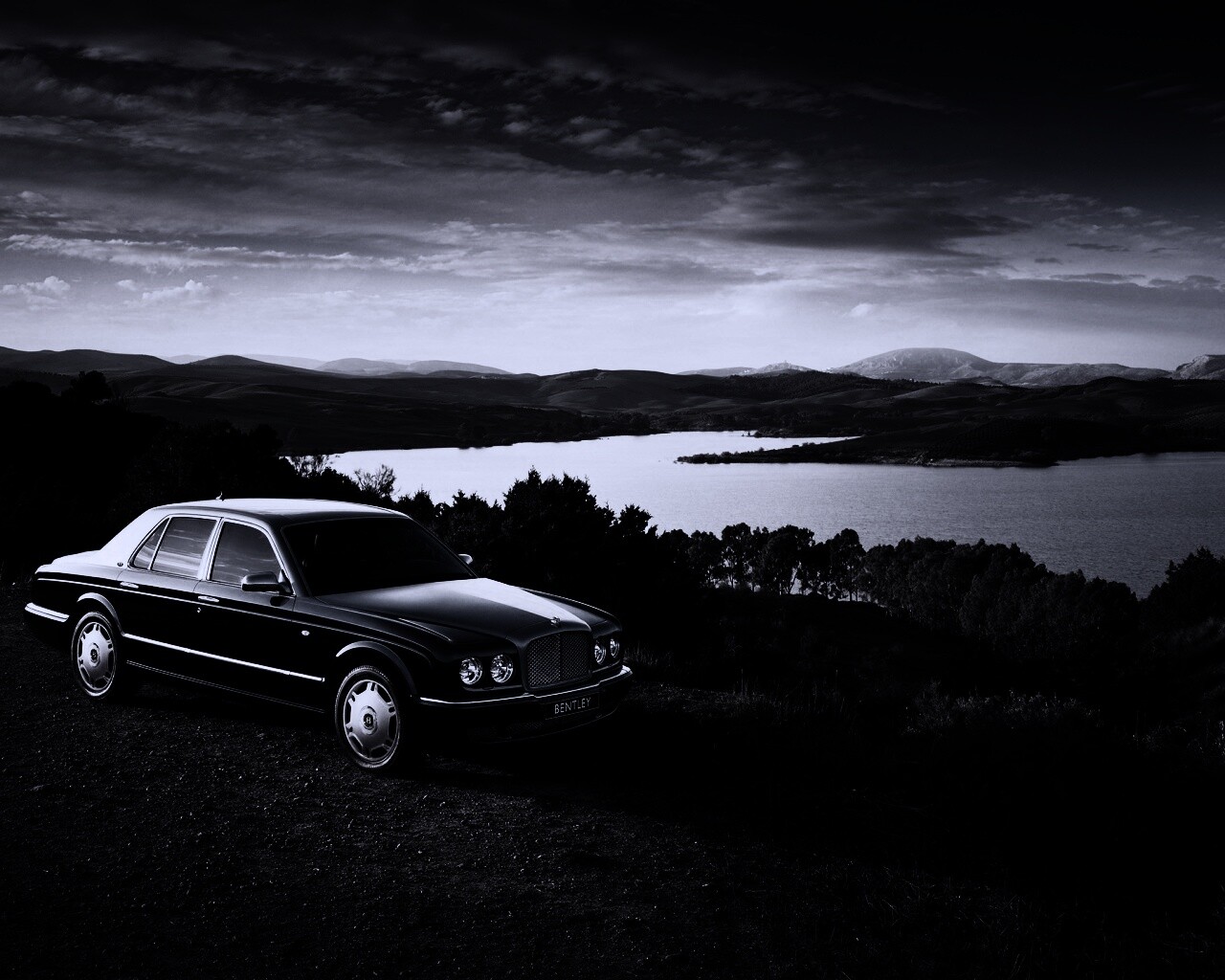 Обои для рабочего стола «Бентли у озера» 1280х1024 с фильтром gotham (оригинал 1920х1440)