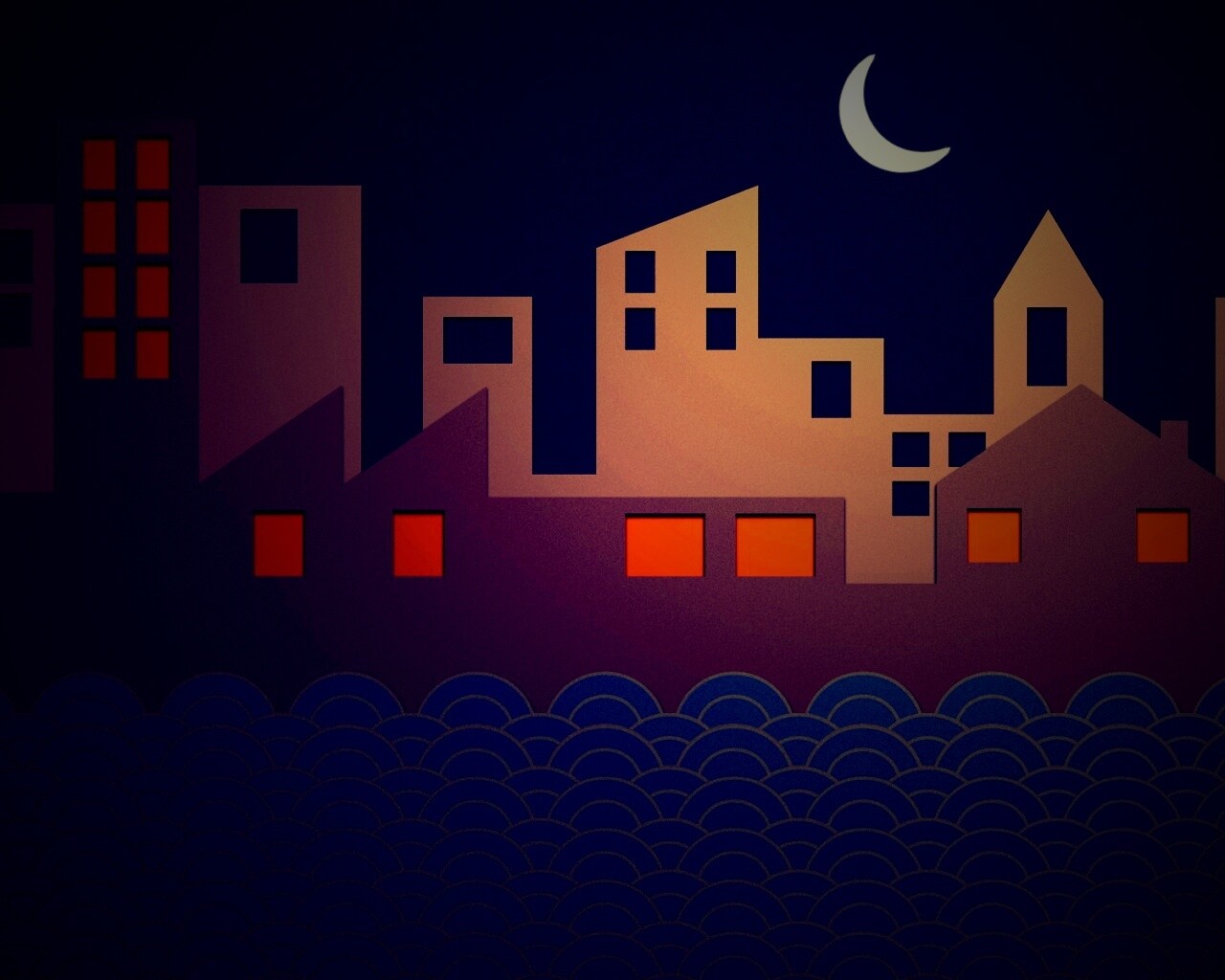 «Ночной город на реке»