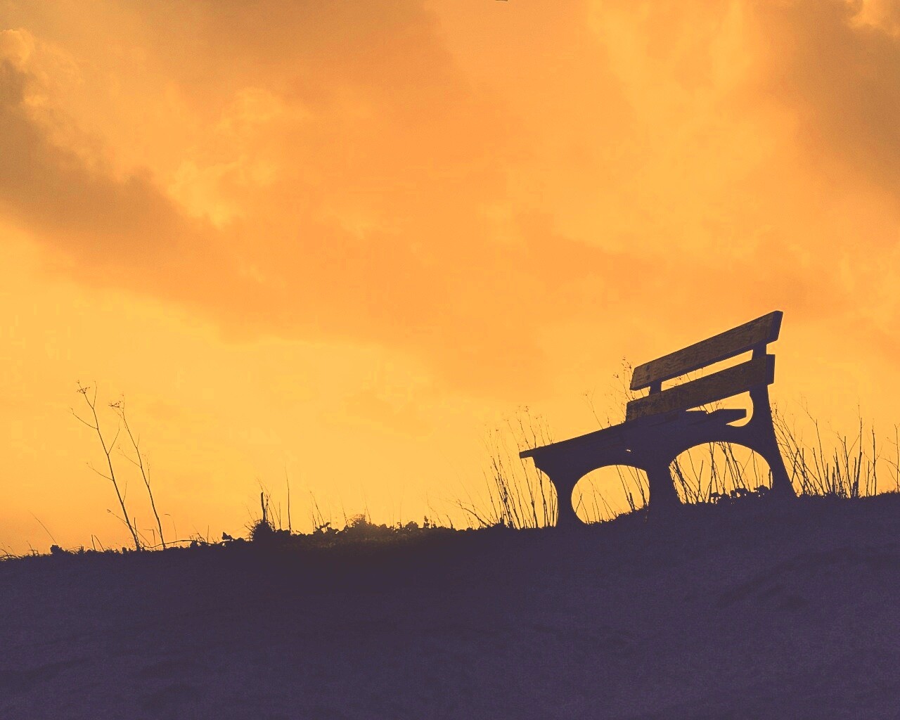 «Силуэт скамейки на фоне неба»