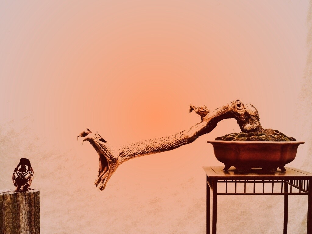 «Змея-коряга напдает на птичку»