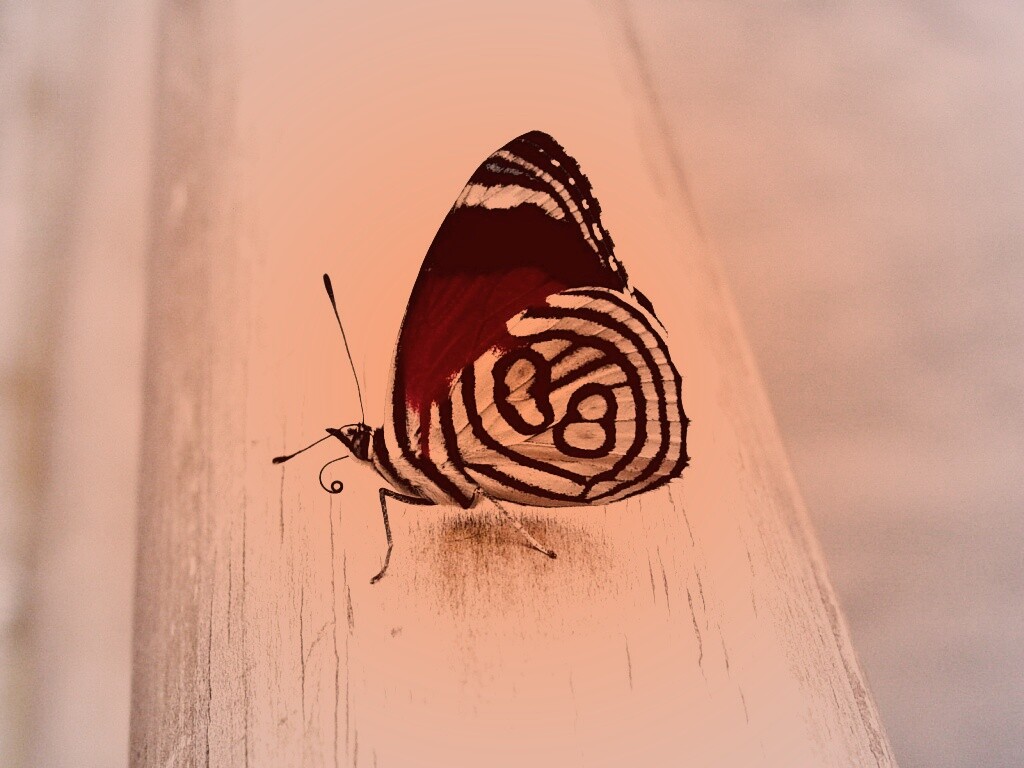 Обои для рабочего стола «Бабочка на бревне» 1024х768 с фильтром toaster (оригинал 1600х1200)