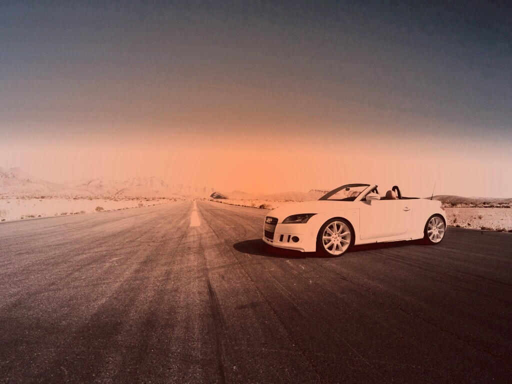 «Кабриолет Ауди на пустынной дорге»