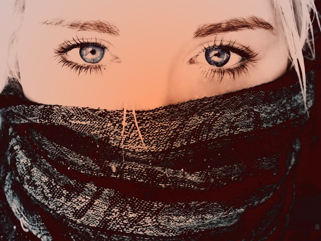 «Блондинка с шарфом на лице»