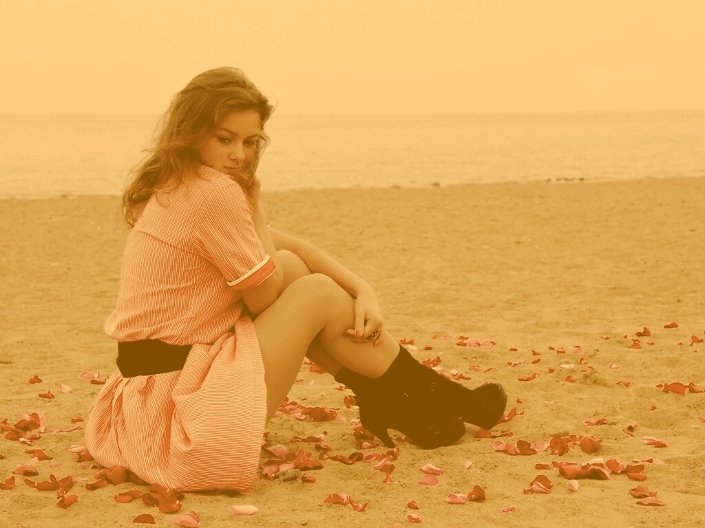«Девушка среди лепестков на пляже»