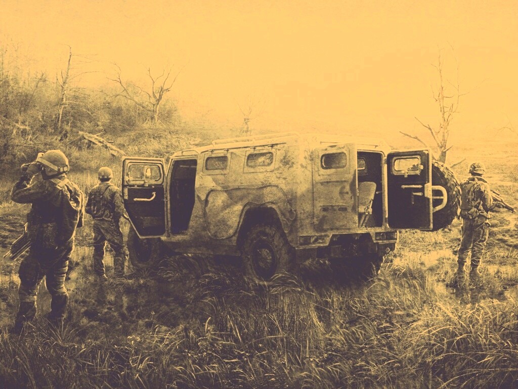 «Солдаты из сталкера на болоте»