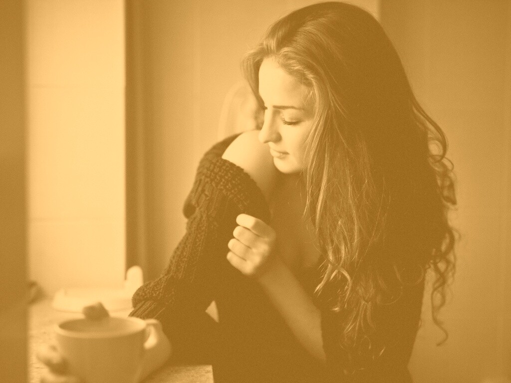 «Обнаженное плечо и чашка кофе»