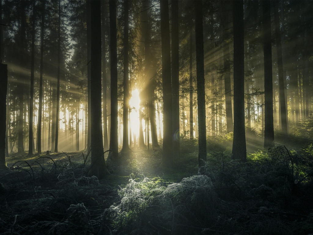 «Свет пробивается сквозь стволы деревьев»