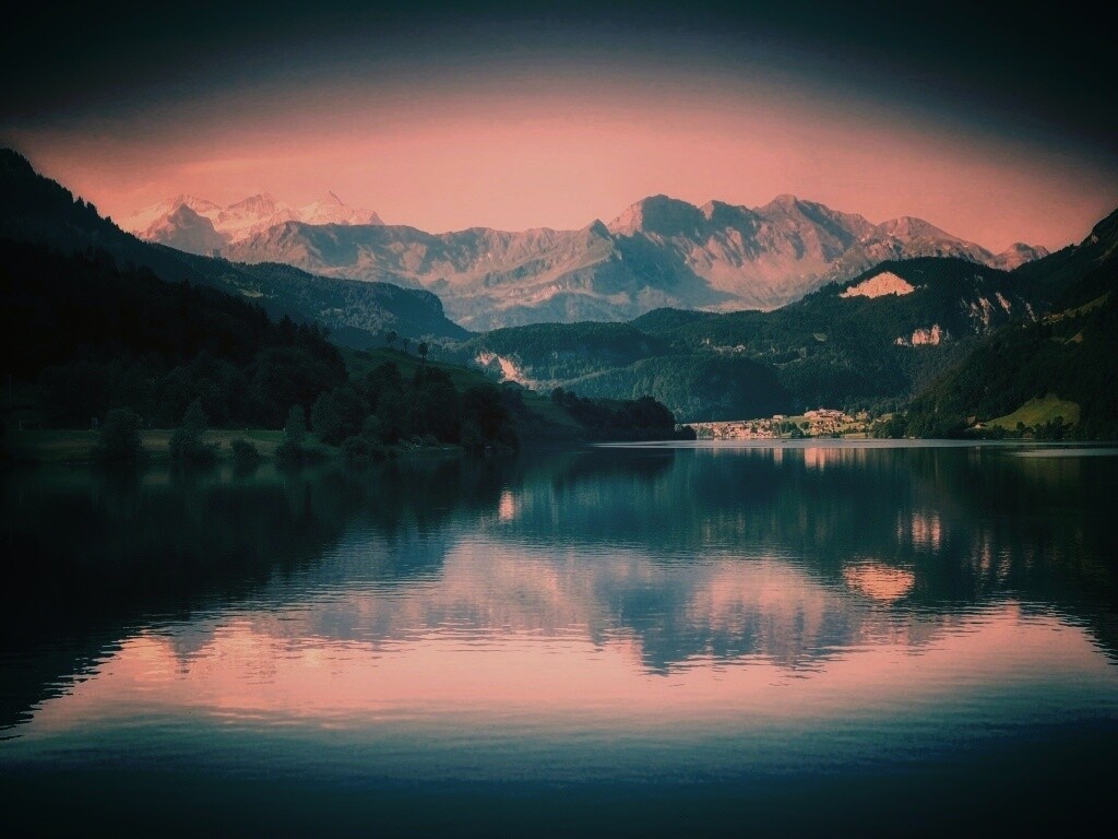 Обои для рабочего стола «Озеро» 1024х768 с фильтром earlybird (оригинал 2048х1354)