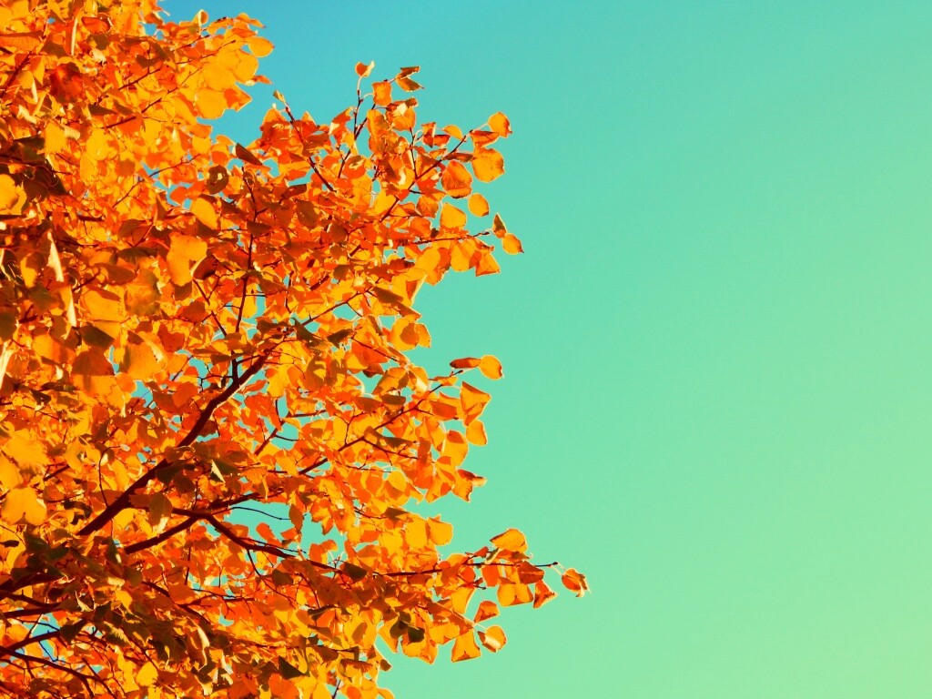«Ветви с пожелтевшими листьями на фоне неба»