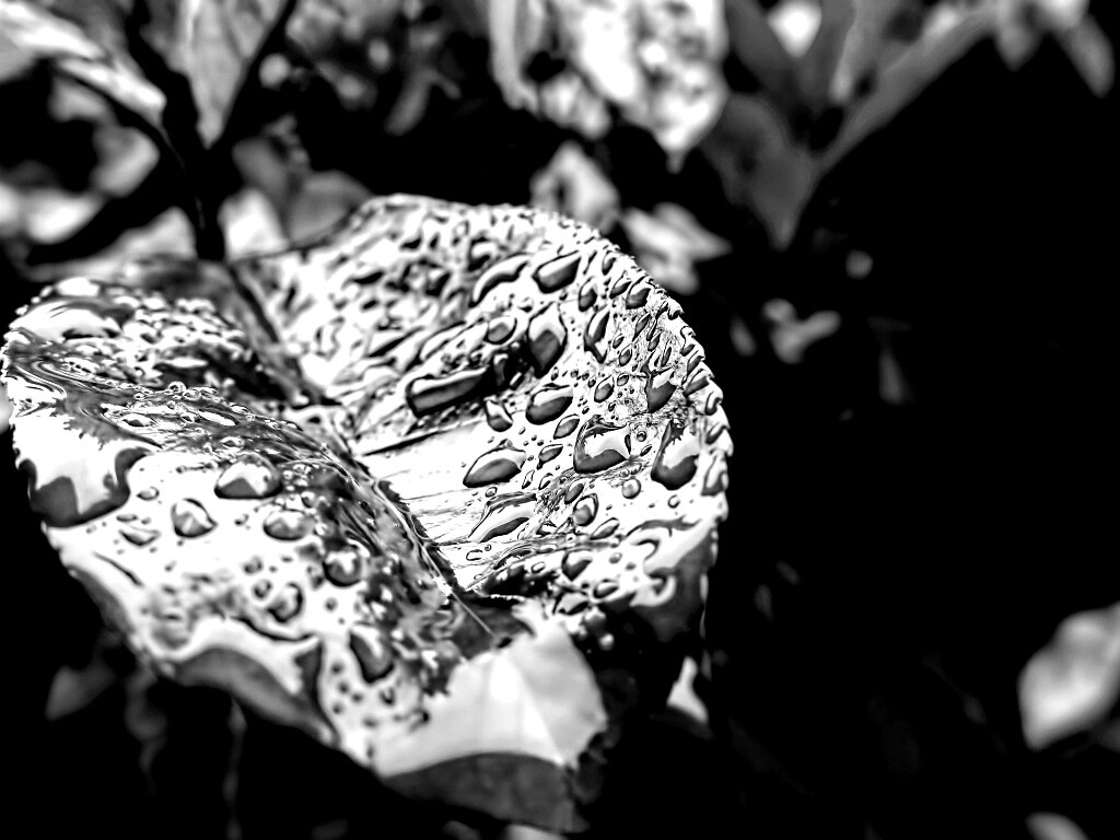 «Красный лист в каплях воды»