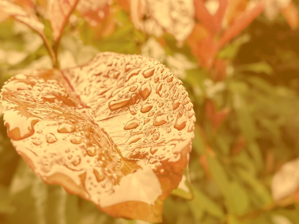 «Красный лист в каплях воды»