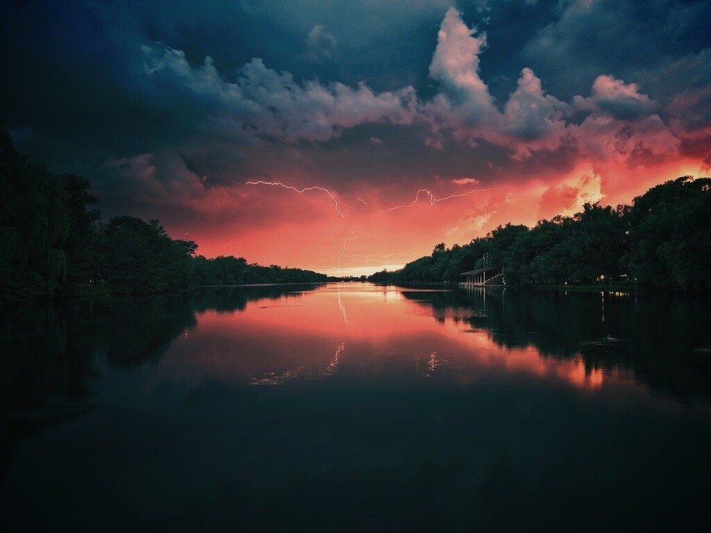 «Молнии на фоне заката, стандартные обои mac»