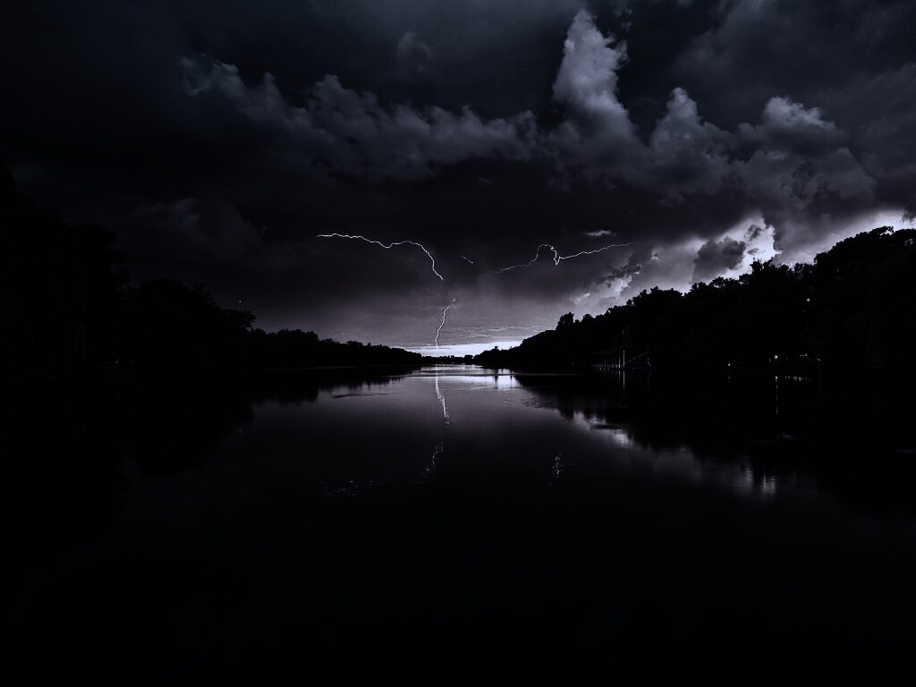 «Молнии на фоне заката, стандартные обои mac»