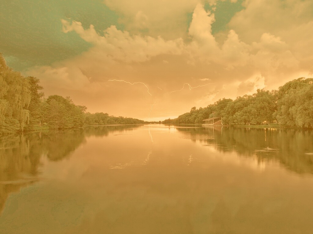 «Молнии на фоне заката, стандартные обои mac»