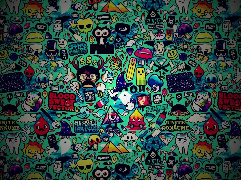 Обои для рабочего стола «Коллаж из мультяшных картинок» 1024х768 с фильтром lomo (оригинал 2560х1600)