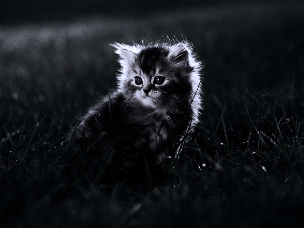 «Пушистый котенок в траве»