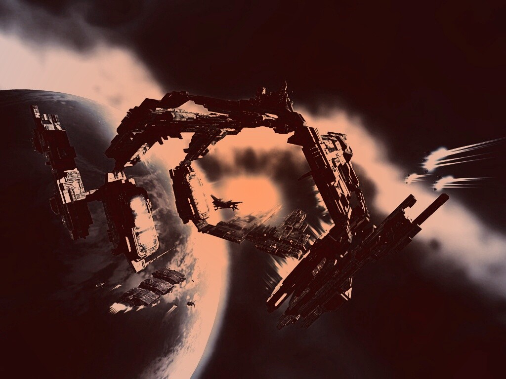 Обои для рабочего стола «Космический корабль» 1024х768 с фильтром toaster (оригинал 1920х1080)