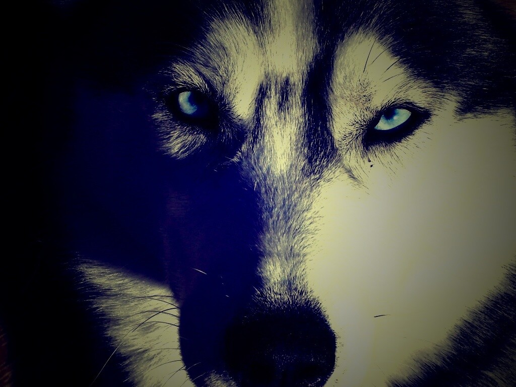 Обои для рабочего стола «Собака с голубыми глазами» 1024х768 с фильтром lomo (оригинал 2560х1920)