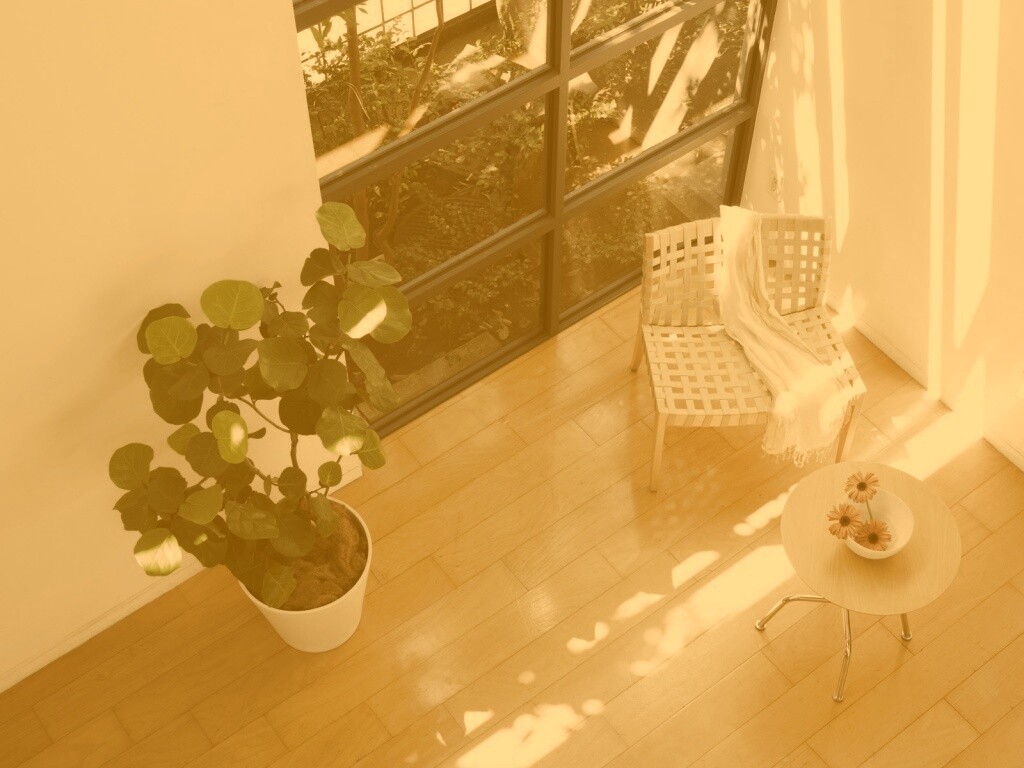 «Стул, столик и цветы в комнате»