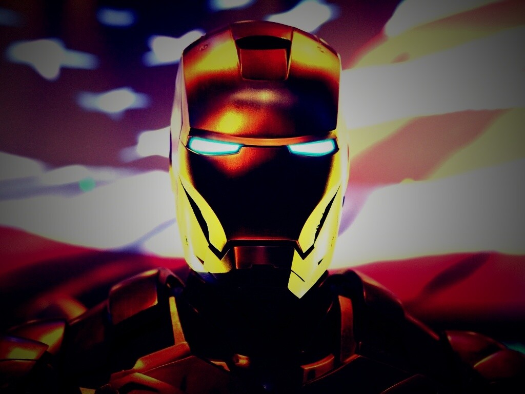 «Железный человек на фоне американского флага»