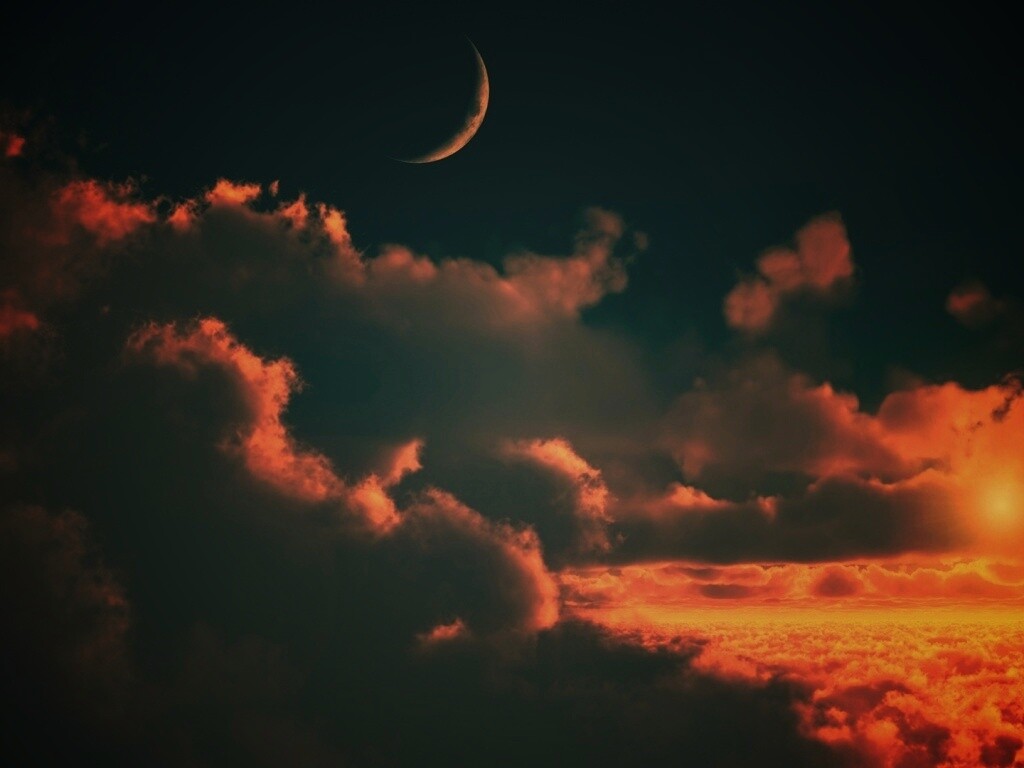 «Закат и месяц над облаками»