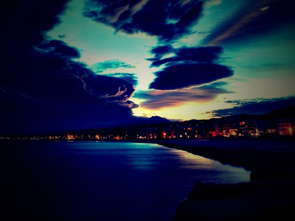 «Красивый закат над городом у моря»