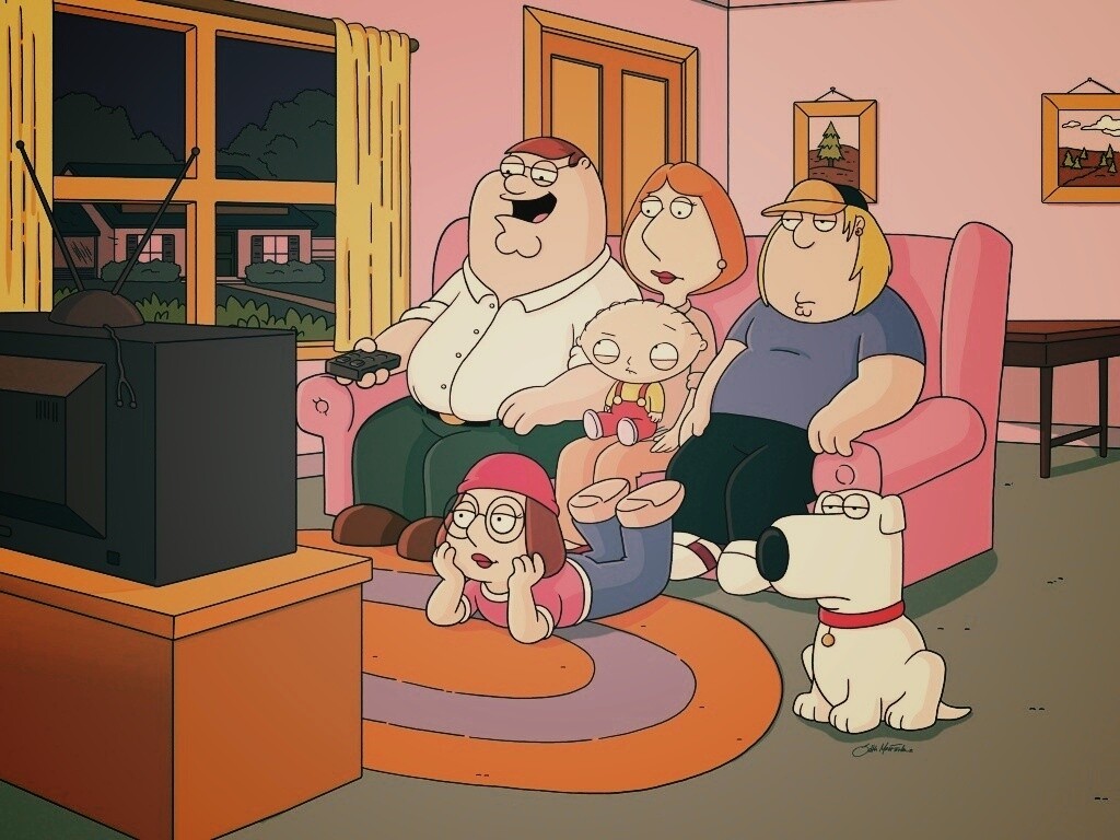 «Гриффины всей семьей перед телевизором»