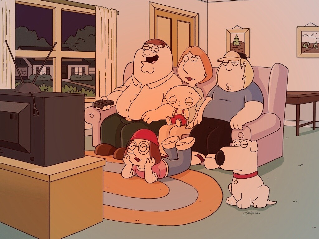«Гриффины всей семьей перед телевизором»