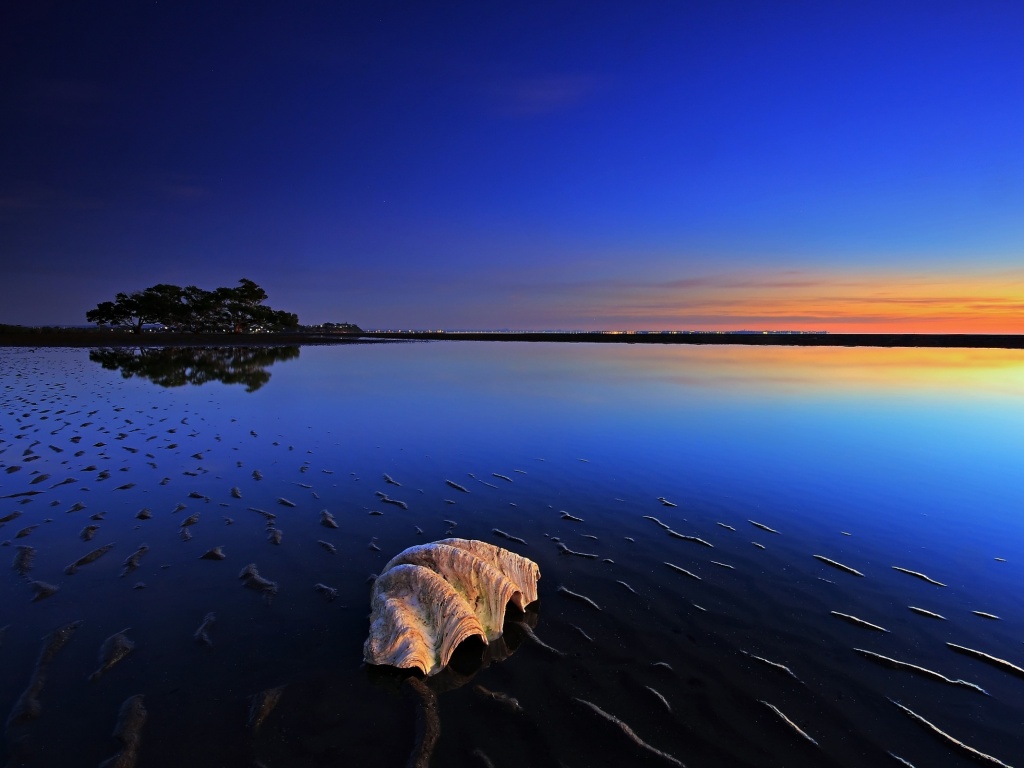 Обои для рабочего стола «Закат на берегу моря» 1024х768 (оригинал 2560х1600)