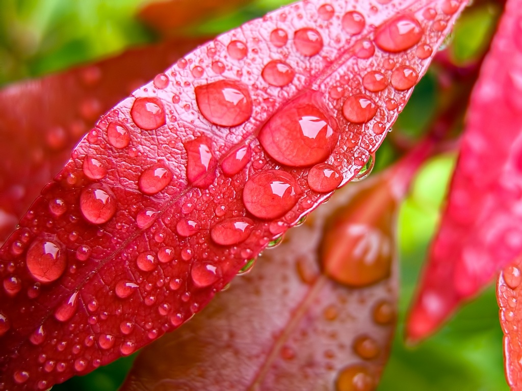 «Капли росы на красных листьях»