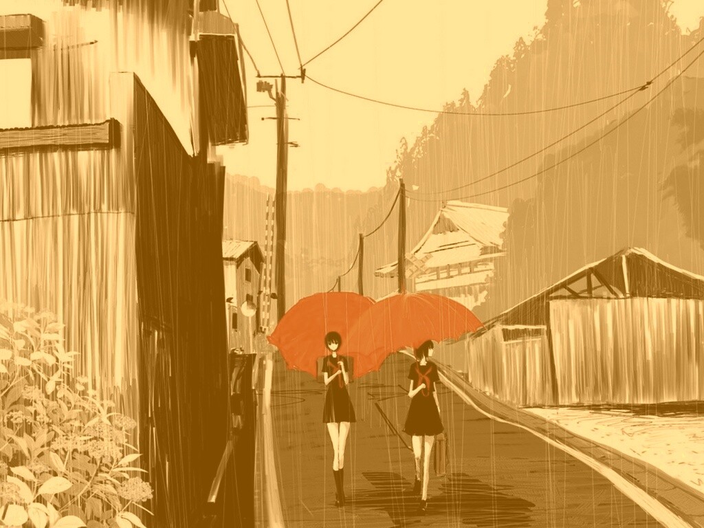 «Девушки с красными зонтами»