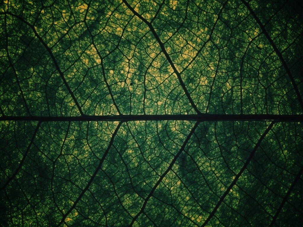 Обои для рабочего стола «Свечение зеленого листа в макро» 1024х768 с фильтром earlybird (оригинал 2560х1600)