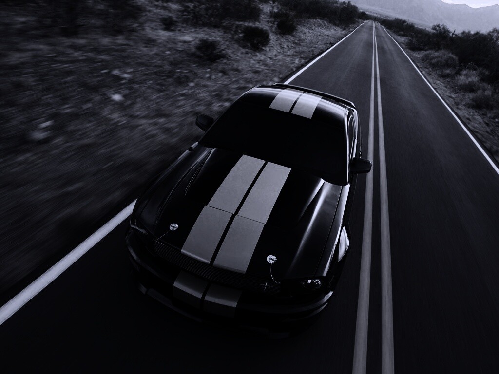 Обои для рабочего стола «Ford Mustang с гоночными полосками» 1024х768 с фильтром gotham (оригинал 1600х1200)