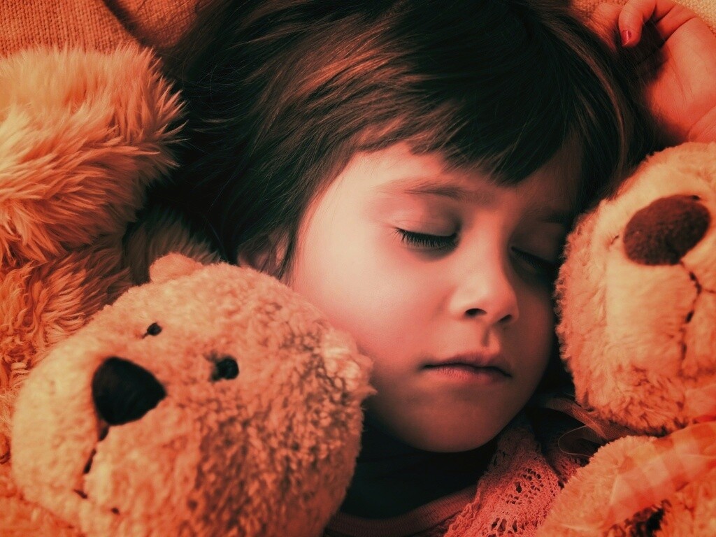 «Девочка спит с мишками в обнимку»