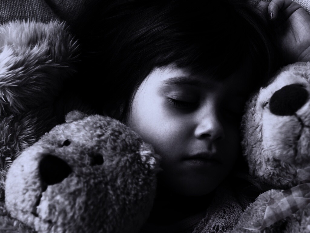 «Девочка спит с мишками в обнимку»