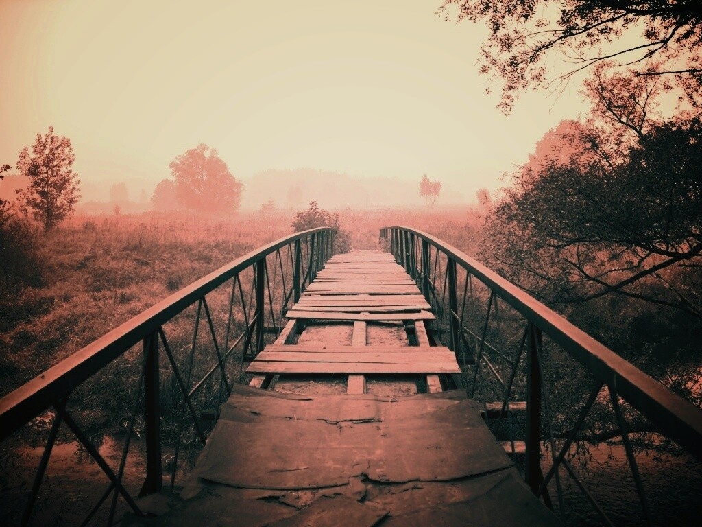 «Старый мост на черно-белом фото»