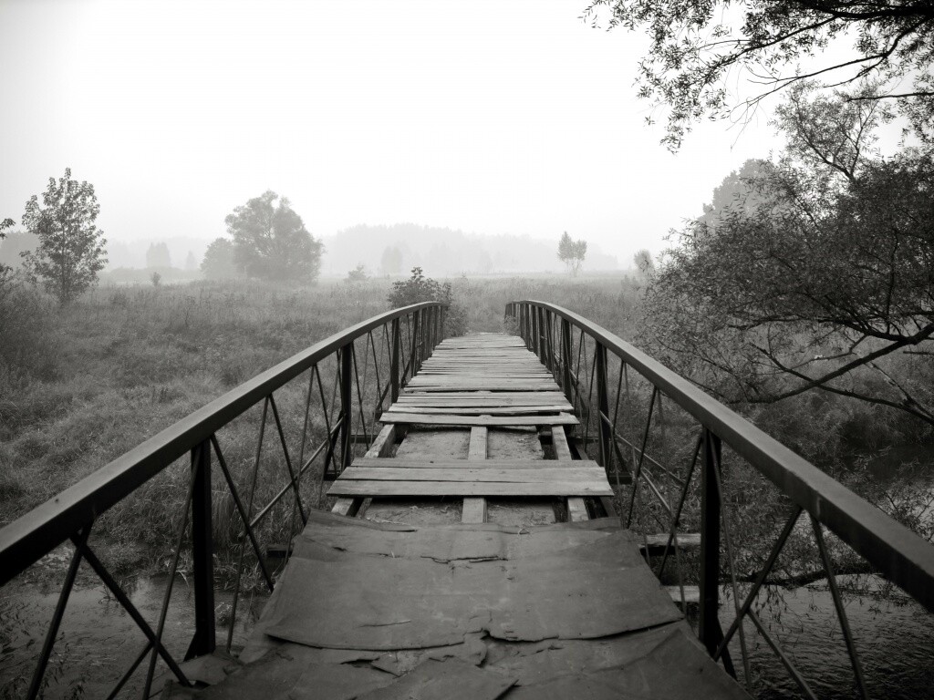 «Старый мост на черно-белом фото»
