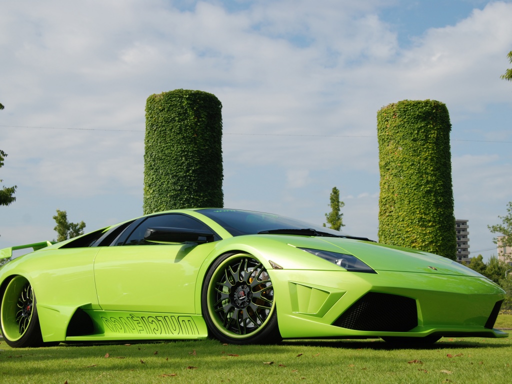 Обои для рабочего стола «Зелёный Ламборджини на траве» 1024х768 (оригинал 3000х2008)