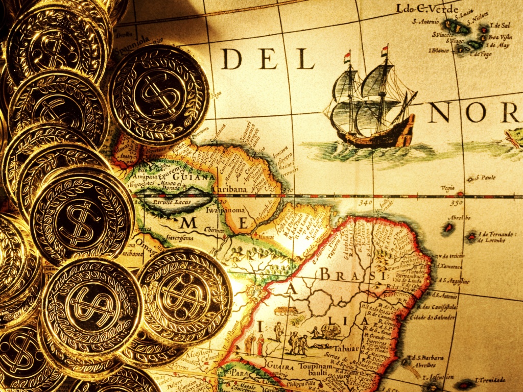 Обои для рабочего стола «Деньги и карта сокровищ» 1024х768 (оригинал 2000х1330)