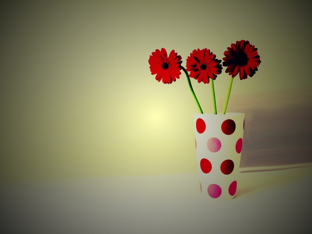 «Вазочка с тремя красными герберами»