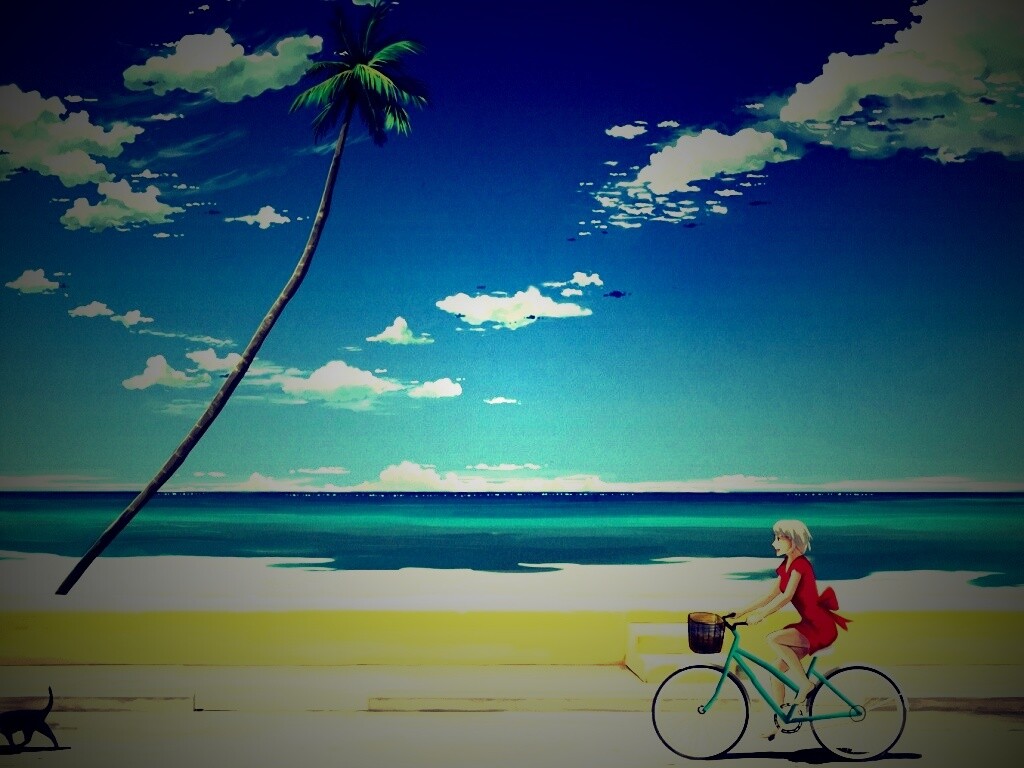 «Девушка едет на велосипеде вдоль берега»