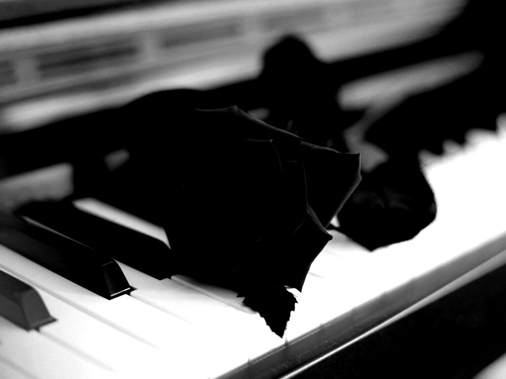 Обои для рабочего стола «Роза на клавишах пианино» 1024х768 с фильтром inkwell (оригинал 1920х1200)
