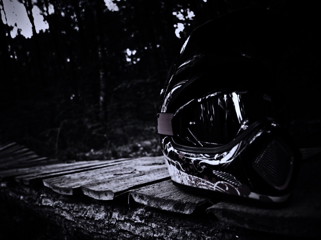 Обои для рабочего стола «Шлем на лесной велотрассе» 1024х768 с фильтром gotham (оригинал 3872х2592)