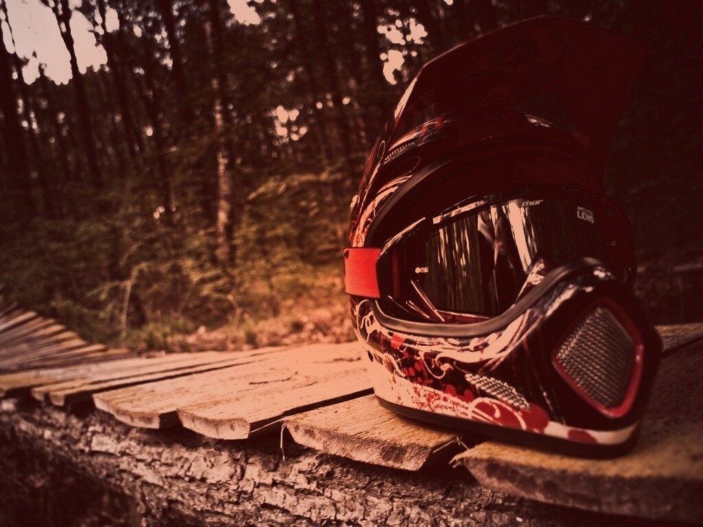 Обои для рабочего стола «Шлем на лесной велотрассе» 1024х768 с фильтром toaster (оригинал 3872х2592)