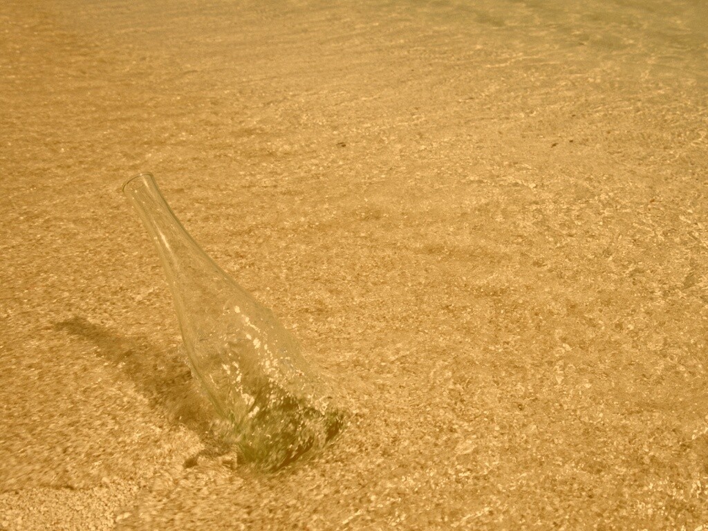 «Бутылка в песке у воды»