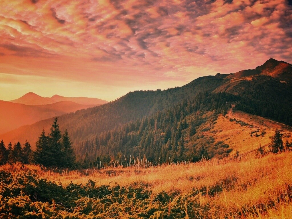 Обои для рабочего стола «Предгорье» 1024х768 с фильтром earlybird (оригинал 2560х1600)