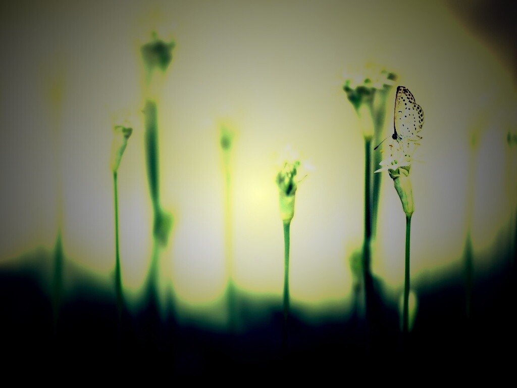 Обои для рабочего стола «Бабочка на цветке» 1024х768 с фильтром lomo (оригинал 2560х1600)