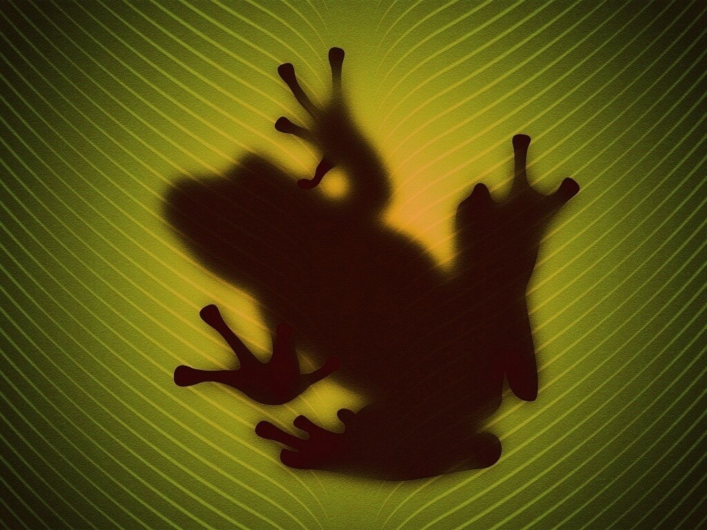 «Силуэт лягушки просвечивает сквозь зеленый лист»
