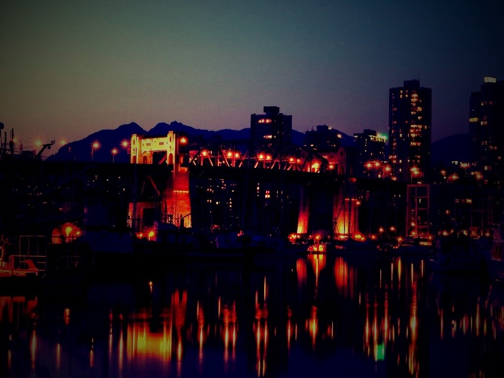 «Мост и катера на закате»